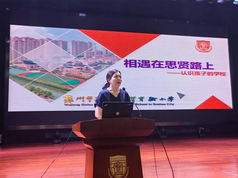 最后,学校党总支陆舜娟书记向家长们全面介绍了思贤实验小学的发展历程、办学理念与办学成果。她提到,学校始终秉承“见贤思齐” 的校训,在各级领导的关心与家长的支持下不断进步。