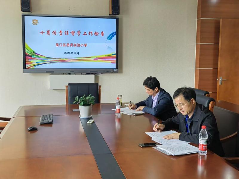 为筑牢校园安全防线,规范办学行为,保障“双减”政策落地,10月24日,吴江区第七责任区督学曹补泉、顾育强校长莅临思贤实验小学,开展十月份专项安全督察,重点围绕校园安全、校园餐管理及“双减”落实情况展开检查指导。